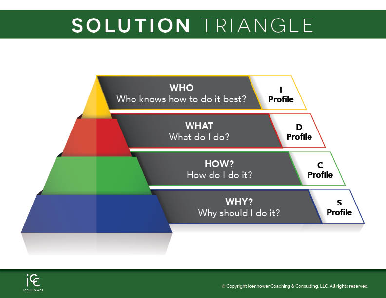 In addition, a good understanding of the DISC behavior profiles will help you understand at what level a person will enter the Solution Triangle.